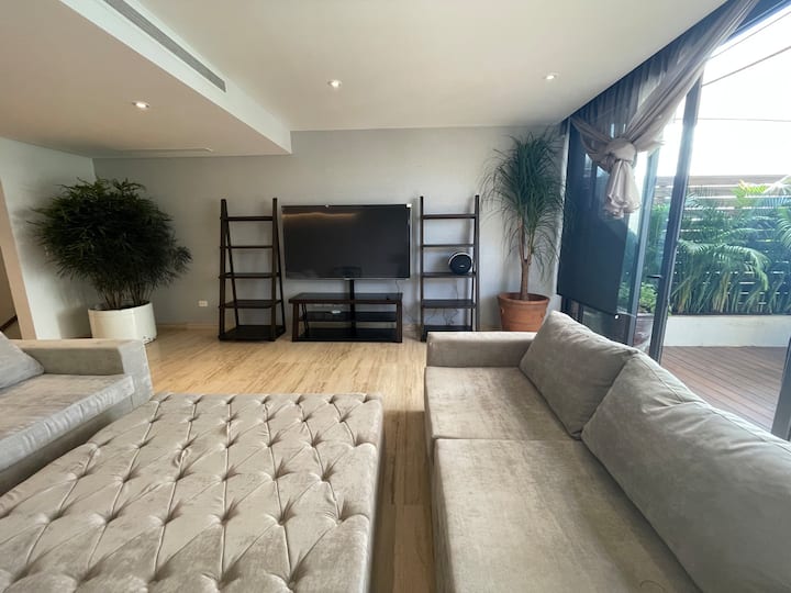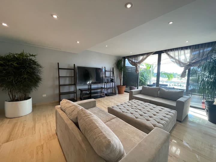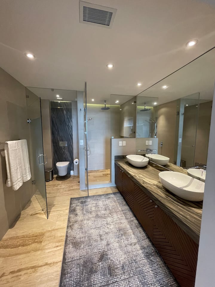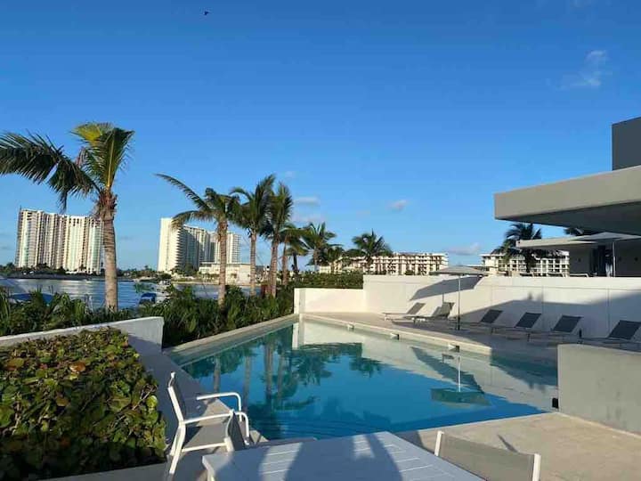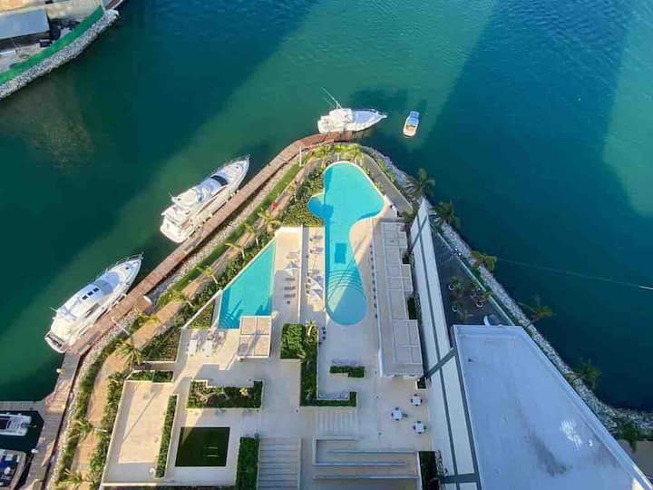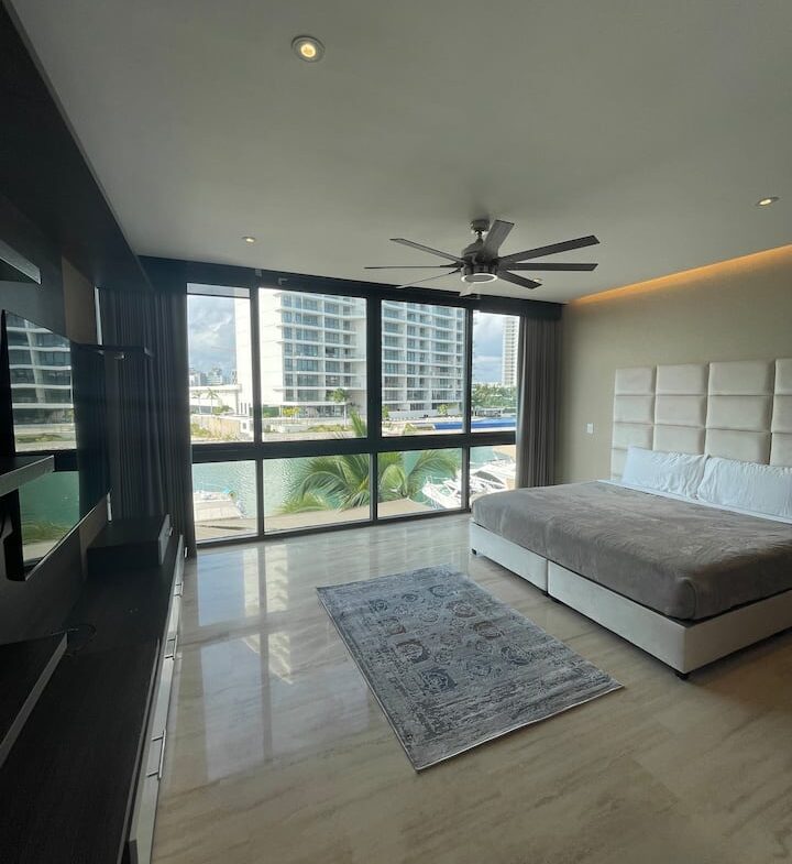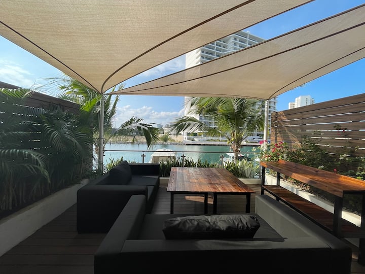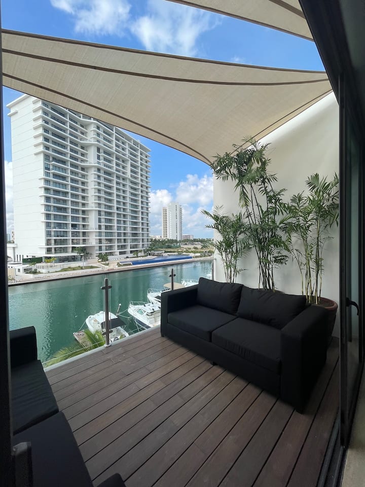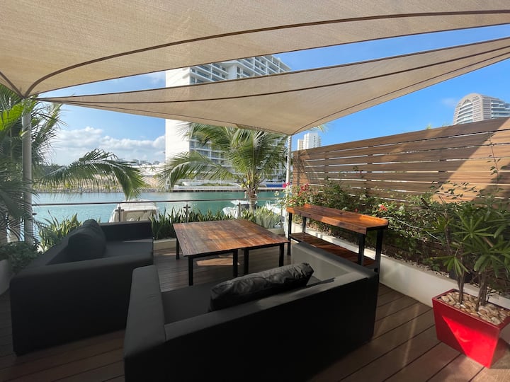 Experience luxurious beachfront living with 4,300 square feet of space in Cancun's newest and most developed area, Puerto Cancún. Enjoy breathtaking views from the terrace overlooking the water and the finest yachts in Cancun. Direct access to the marina and Puerto Cancún shopping center enhances your stay with convenience and style.