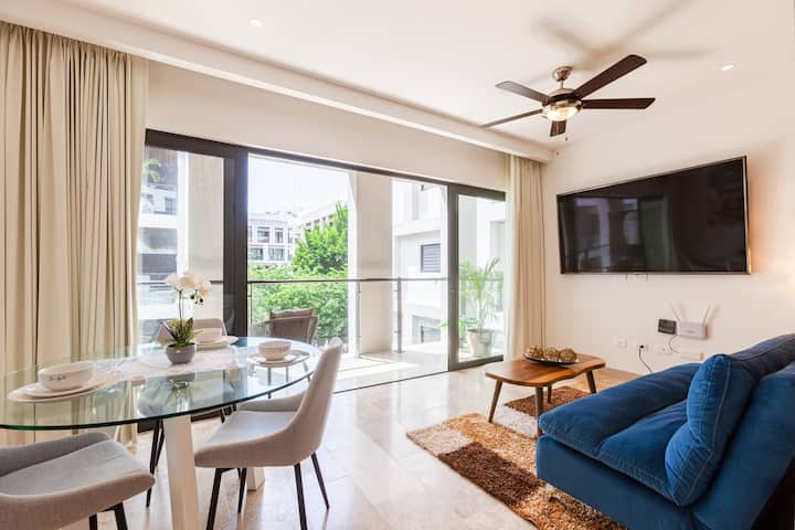 Enjoy all the exclusive amenities, including a gym and spa; a rooftop with 4 spectacular pools, a SkyBar area, a game room with a pool table and TV, a coworking space, and a relaxing sea view.