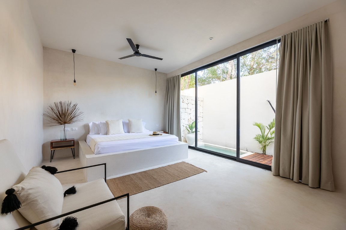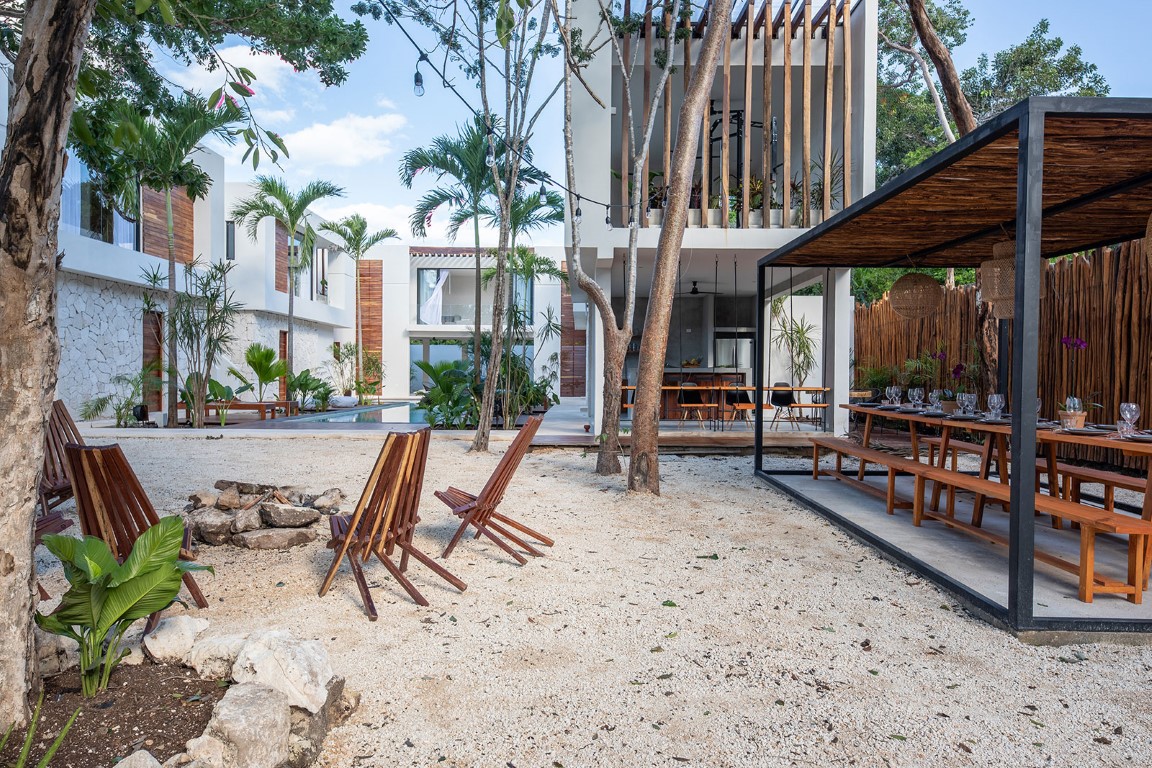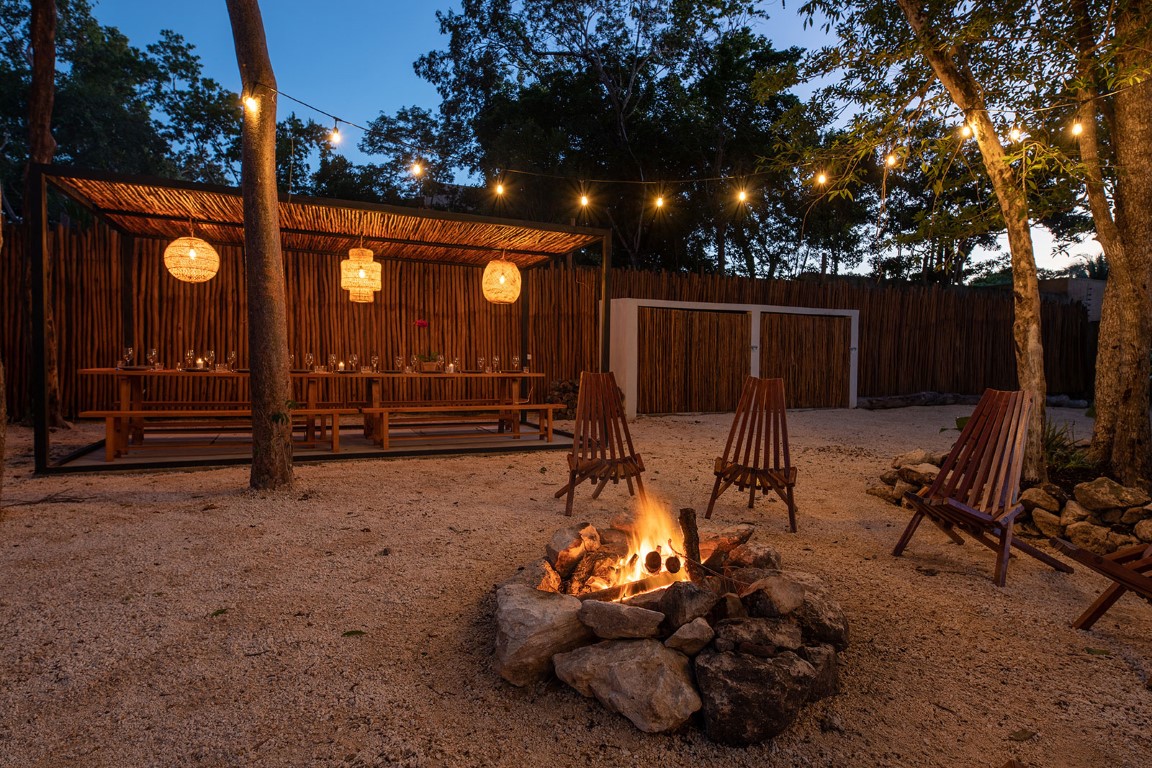 The property has been built in the true spirit of Tulum. Luxury by design, natural materials, and vast green spaces. Find balance and harmony so you can share, create, and enjoy. Eat healthily, relax your mind, exercise… all options are there for you to enjoy. Each room has individual access, air conditioning, a private bathroom, and a private terrace. The outdoor fireplace can be used daily to gather, relax, and enjoy a tranquil and relaxing evening after your sunny days. Our sound system allows you to play your favorite music via Bluetooth while you relax around the pool or the outdoor kitchen.