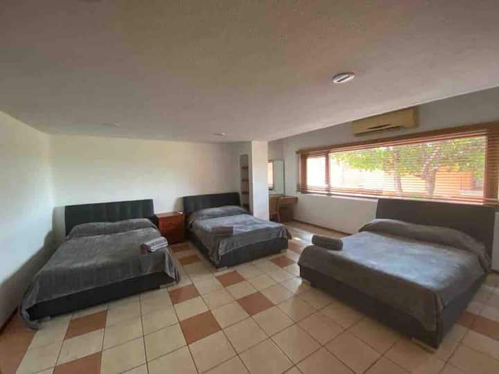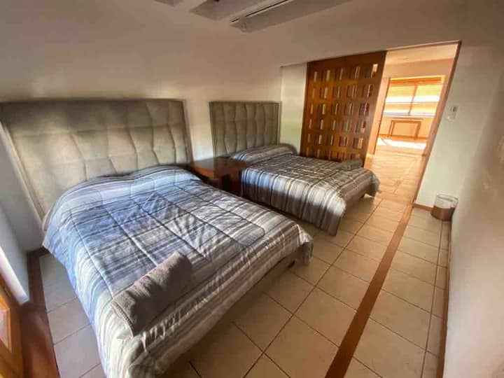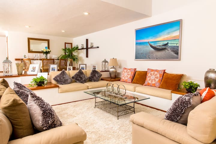 This spacious villa is the perfect family home for your next trip to Cancun. The house is decorated and designed to give our guests a feeling of warmth and being at home! With 3 floors, 4 bedrooms, and 2 family rooms, the house can accommodate 16 people. It is fully equipped with all the basic amenities you might need: a complete kitchen, coffee maker, large ice refrigerator, barbecue, TV, WiFi...