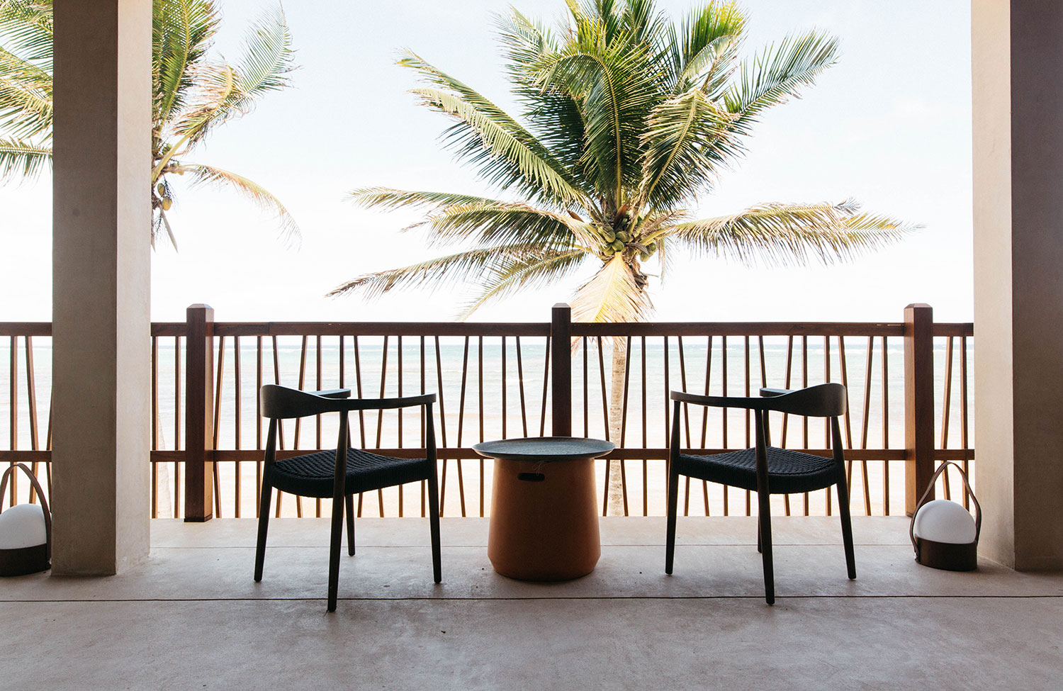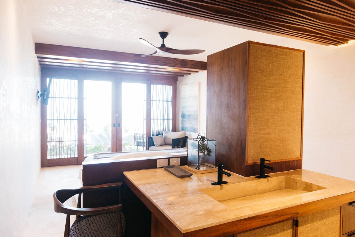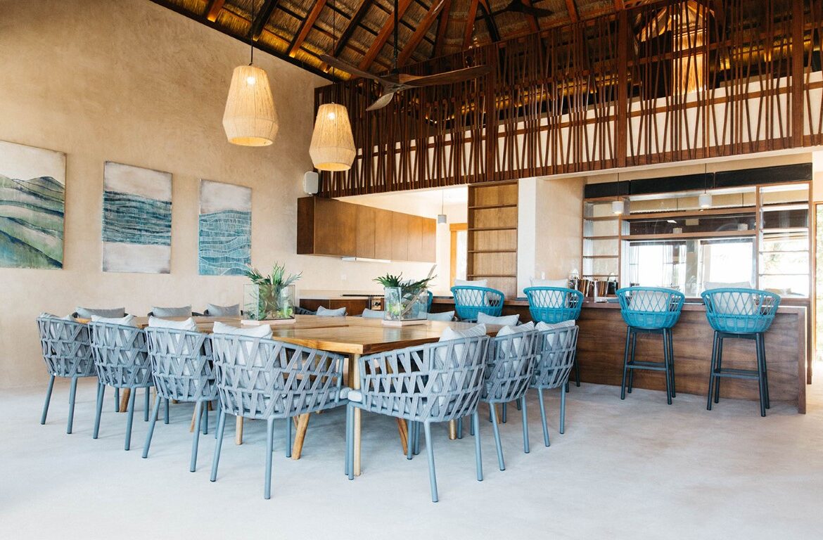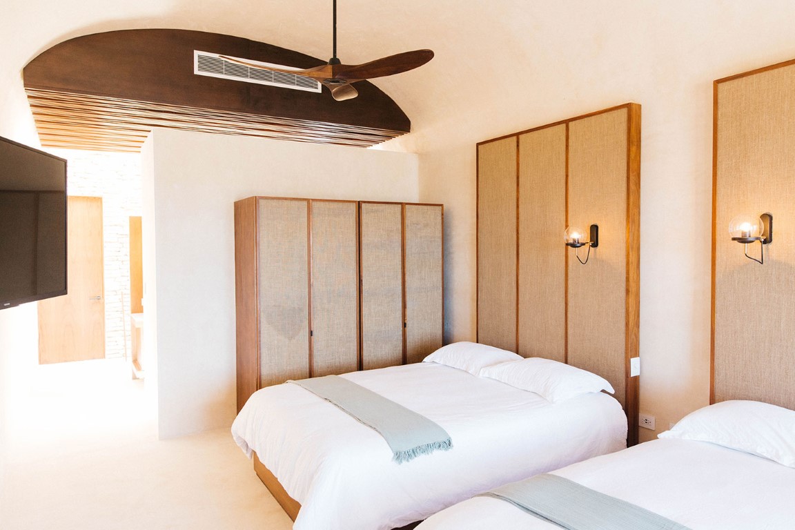 The property is divided into two buildings, the main house and the casita, and can accommodate up to 20 guests. The main villa comfortably hosts 12 guests in five suites, each equipped with air conditioning, queen-size beds, beautiful stone-clad bathrooms, and stunning ocean views. The bedrooms are designed for sensory relaxation, with clean lines, local materials, and elegant design applied to every detail. Additionally, the sea-view balconies are perfect for enjoying long, relaxed afternoons.