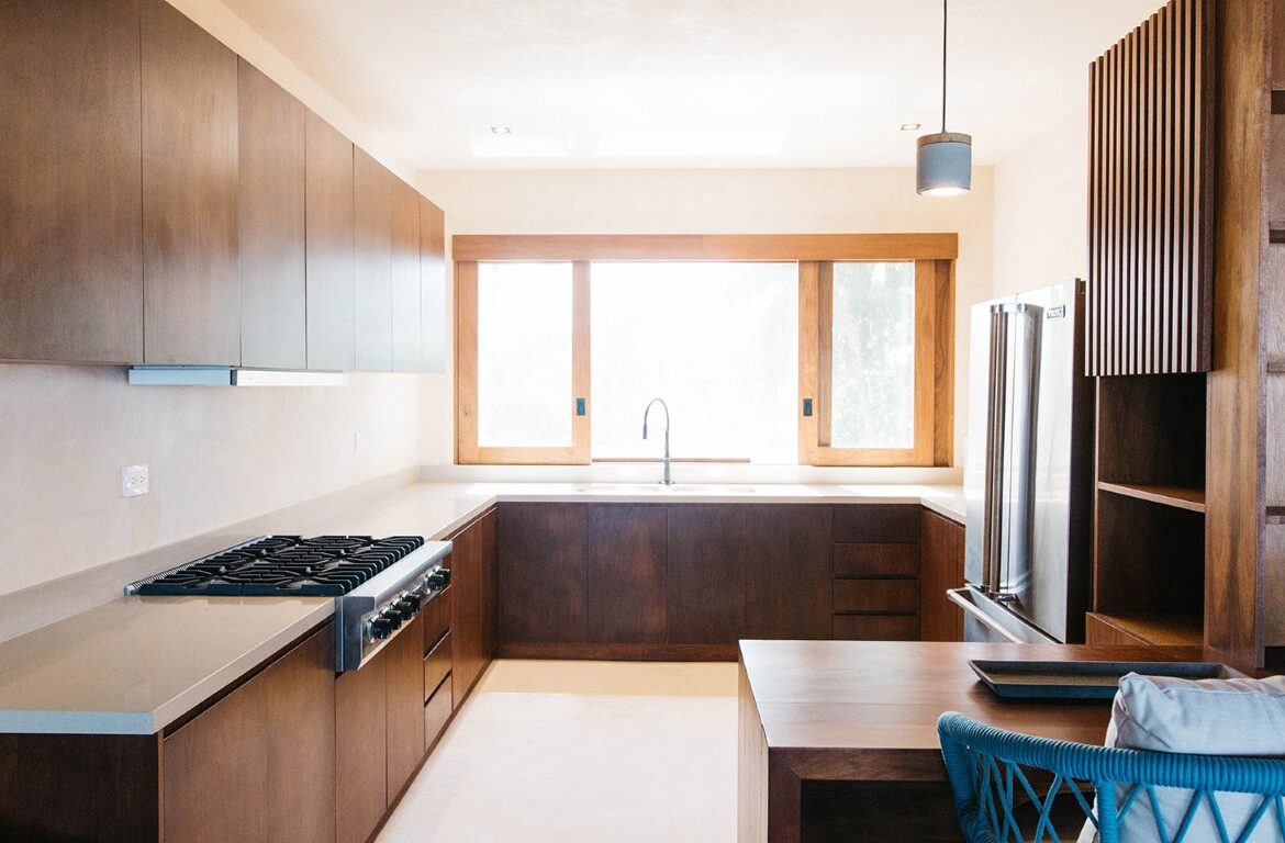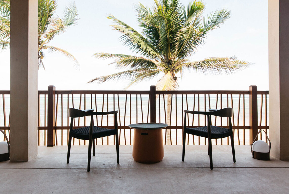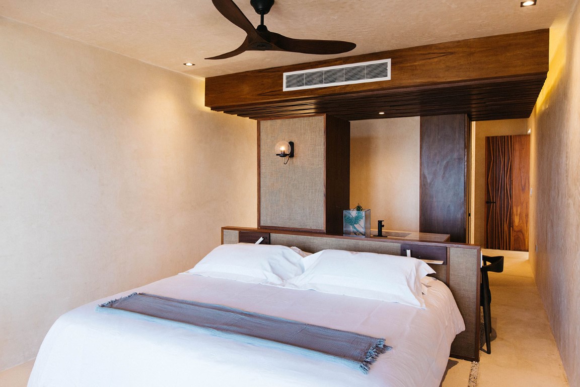 The property is divided into two buildings, the main house and the casita, and can accommodate up to 20 guests. The main villa comfortably hosts 12 guests in five suites, each equipped with air conditioning, queen-size beds, beautiful stone-clad bathrooms, and stunning ocean views. The bedrooms are designed for sensory relaxation, with clean lines, local materials, and elegant design applied to every detail. Additionally, the sea-view balconies are perfect for enjoying long, relaxed afternoons.