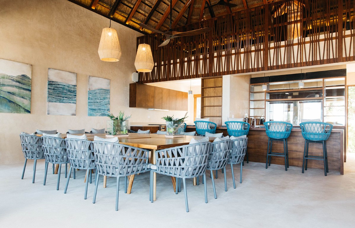 La piscina y la terraza se funden con las arenas blancas de la bahía, invitando a reuniones al aire libre ya sea en las tumbonas junto al agua o en la mesa de comedor al aire libre. Mientras tanto, los espacios interiores capturan el atractivo de un bungalow junto a la playa y lo elevan a otro nivel estético.