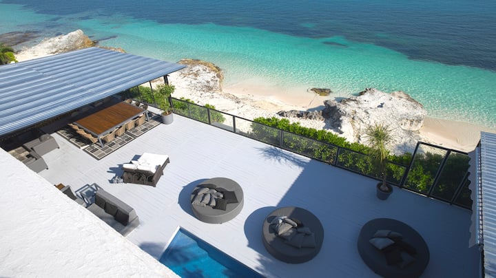 Esta villa familiar única tiene la vista más impresionante del océano Caribe turquesa. Prepárate para ser una estrella por el lugar elegante y nuestro equipo completo dedicado de personal, ama de llaves y mayordomo.