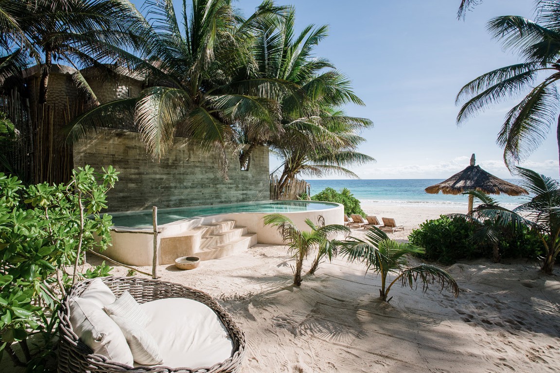Luxury 3-BR Romantic House es una hermosa casa de alquiler vacacional en la playa de Tulum a pocos pasos del mar. Bonita es una casa romántica para dos y un hogar cómodo para una familia. Hay dos camas adicionales en el piso principal.