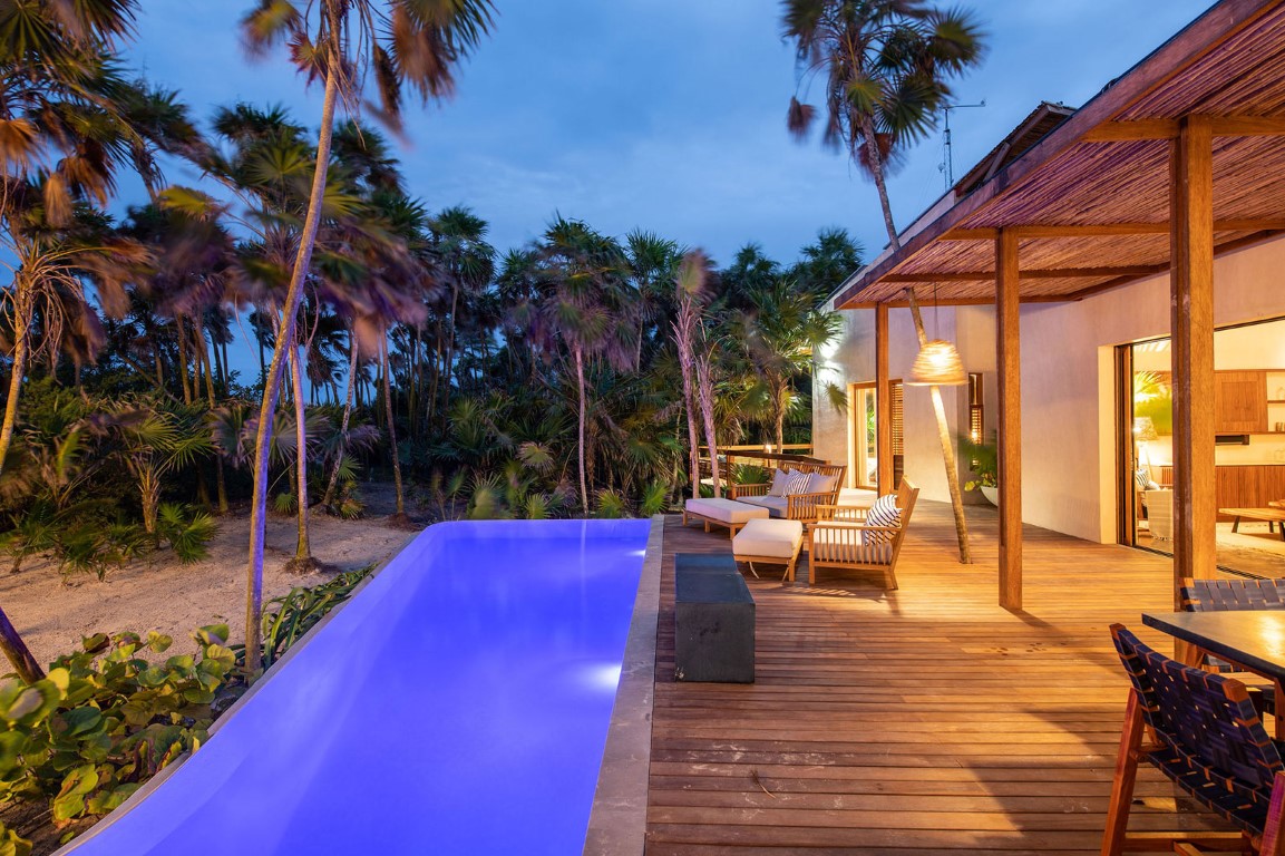 Incluso con una piscina que es casi una obra de arte y una tina en la terraza de la azotea, en la villa Luxury 4-BR Cozy Eco-Conscious, la naturaleza se lleva el espectáculo. Ubicada a 3.5 millas en la Reserva de la Biosfera de Sian Ka’an, esta acogedora villa ecológica es una utopía tropical.